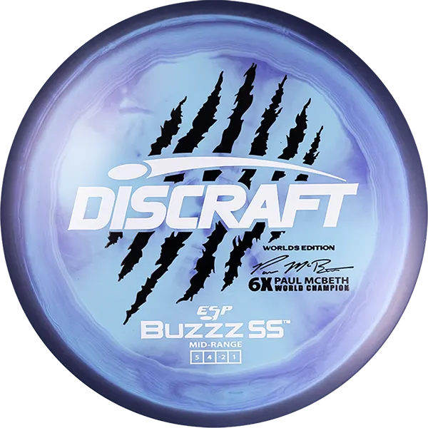 ❘ Midrange Disc ❘ DictionaryBringing back one of our most recognizable championship inspired looks, the Worlds Edition 6-Claw ESP Buzzz SS celebrates the 2026 PDGA World Championship. Now with the trusted Buzzz SS mold, this release honors Paul McBeth’s 6 world titles while tying one of the sport’s most iconic visuals to the biggest stage.